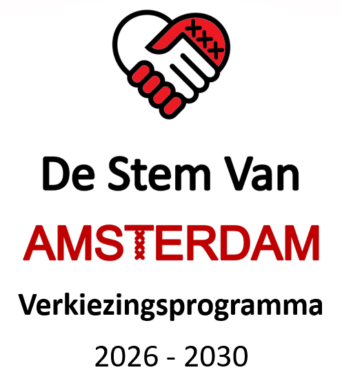 Wonen: De Stem Van Amsterdam wil 50% van vrijkomende huurwoningen toewijzen aan inwoners die minimaal de afgelopen 4 jaar onafgebroken in Amsterdam hebben gewoond. Een stop op verkoop van sociale huurwoningen op de begane grond ten behoeve van ouderen en bewoners, die minder mobiel zijn. Versneld verduurzamen van huurwoningen voor een beter leefklimaat, tegengaan van energie-armoede, en uitbannen van schimmelwoningen.